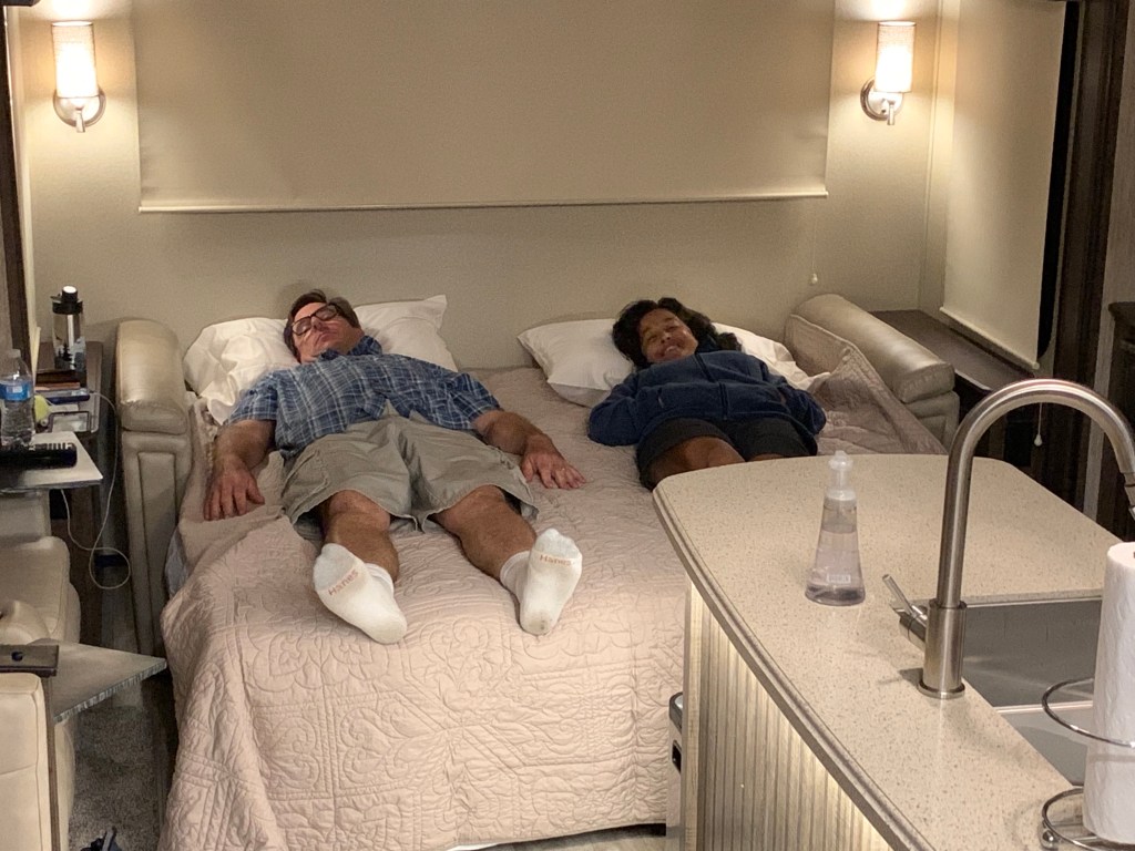 We are in a new phase of life. We’re empty nesters. For 15 years, we had bunkhouse trailers. Our first rig had 4 bunks and we let our kids bring friends on our trips sometimes. Other times, we parked it in our driveway when we needed more sleeping space at the house and sent some kids out to sleep in the driveway. My brother and his family would come up to visit, but there is no hotel in our town and no room in our house. So, we parked our trailer in the RV park and they stayed in our “vacation condo.” This past summer, we realized that our kids hadn’t come on a long trip with us in years and that we were only using the bunkhouse for was storing my husband’s golf clubs. We decided it was time to re-think the bunkhouse situation. We bought a 5thwheel with a comfortable pull out sofa-bed (Not a jack-knife sofa. Jack Knife pull outs are only comfortable for kids!). It turned out to be a good choice.